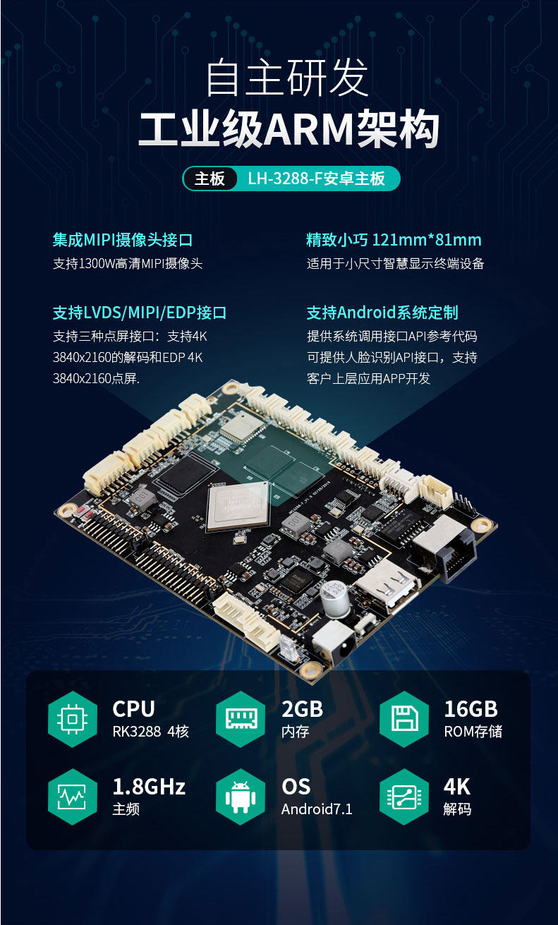 ·標準配置采用自主研發(fā)主板RK3288,運行內(nèi)存和硬盤儲存分別為2G+ 16G,性能更穩(wěn)定,支持配置升級,滿足出入常見長時間運行工作狀態(tài);