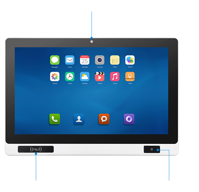 8、搭配100W攝像頭、125K+ 13.56Mhz雙頻讀卡器以及廣視角條碼掃描,使產品應用更加豐富,廣泛。